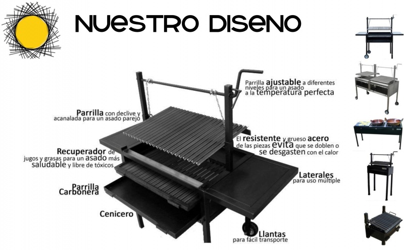 Todo sabe mejor al asador. Especialmente si es un asador fuerte, durable y con diseño innovador. Los asadores T-Grill están construidos con acero reforzado de la más alta calidad, son portátiles, desarmables y de fácil transporte. Contamos con años de experiencia en el mercado. Nuestros asadores han mejorado a través de los años, resultando en un diseño único, cuya satisfacción y calidad garantizamos al 100%. La tecnología del asador T-Grill permite una cocción más saludable de los alimentos: el recuperador de grasas y la parrilla con declive y acanalada, evitan que la grasa caiga al carbón. Al no caer la grasa al carbón, no se quema, evitando así que llamaradas potencialmente cancerígenas amarguen la comida. Este avance tecnológico garantiza un asado parejo, libre de grasa y saludable. Además de que el recuperador de grasas está perfectamente soldado evitando que la grasa se derrame, como sucede con asadores de baja calidad. Nuestra amplia gama de productos nos permite ofrecerles asadores personalizados. Todos nuestros modelos pueden ser fabricados a la medida y/o con características especiales. Además de que nuestros accesorios invitan a la creatividad al cocinar y facilitan la creación de platillos variados. |